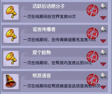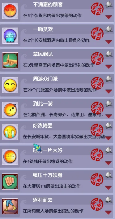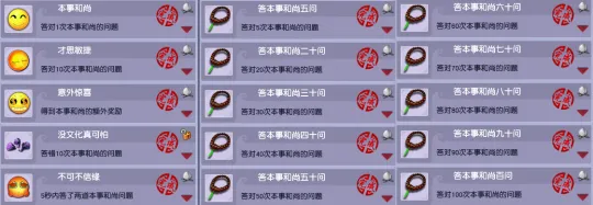 上一篇我们说了一些简单速成的成就,这一篇我们接着来看看休闲玩法模块有哪些成就是可以速成的。 简单速成篇(上):点击查看 五、休闲玩法 1.休养生息:战斗结束都要补红蓝,我们买点包子鬼切草吃吃还能拿成就。另外,学了仙灵店铺的小伙伴记得从仙灵店铺购买哦。 2.挖宝:买藏宝图小挖一下,几点成就轻松到手。 3.五宝:4点成就,只需要把特赦令牌去无名野鬼换成高级藏宝图,换完直接未开图拿去卖掉,无成本刷4点。 4.诗中仙/术中仙:没事时候去龙窟凤巢找一下: 5.本事和尚:地图上经常遇到,答对还有可能获得物品奖励。 6.求签祈福:神机道长(朱紫国75,101)选择求签→宝箱运势,召唤兽经验和人物经验比较容易获得。 7.小龟赛跑:每天12点、22点各举行10场,每一场需要有4个人投票才可开启,1号驯兽师(长安城70,22)选择我要竞猜可以购买点券(8W100点),每一场给三个小龟都投票,连续这样投10次即可获得成功成就。 8.钓鱼:找捕鱼人(傲来国186,64/长寿村95,109)花费2W买鱼竿,去河边右键鱼竿抛竿钓鱼,鱼上钩后选择放生获得成就。 9.放烟花:普通烟花在罗道人(长安城259,40)购买,特殊烟花/组合烟花在流浪艺人(长安城392,206)处购买。 10.账号安全:这里很多成就,分为几个小类。 (1)房都尉答题:长安城(375,73)答题或者活动日历可以直接参加,每天10道题。 (2)密保日:每个月19号是密保日,找节日礼物使者(长安城208,128)参加答题,一次十题。 (3)安全拼图:成就界面打开账号安全成就图,挨个点击马身上的版块,几分钟即可获得十几点成就。 (4)关联手机:大唐驿使(长安城338,103)或者好友列表进行关联手机。 11.变身卡合成:平时获得的垃圾变身卡(2级以上)可以跟召唤兽炼妖合成高一级的变身卡,比如四级的黑熊精卡片+蝴蝶仙子炼妖可能获得蝴蝶仙子卡片。 12.五行大师:买0级武器去更改五行,每日1000两,花费2万,获得3点成就。 13.文学课:≥50级晚上7点-9点找国子监小书童进入,进去后先点教室里小朋友,然后等课文结束答题,全部回答正确,约20分钟4点成就。 14.梦幻头条:好友栏(ALT+F)点击精灵右侧报纸进入,对文章进行点赞评论(可以在战斗里进行)。 15.动作:ALT+D打开动作,去指定地图做出指定动作,其中5个杂货店(建邺城117,127/长安城532,130/长寿村135,52/傲来国100,18/大唐国境261,299),2个长安酒店(长安城437,60/460,164),3处皇宫(长安城104,238/朱紫国145,97/宝象国6,110),4处钱庄(建邺城235,78/长安城512,194/傲来国105.58/长寿村148,94),所有商人场景(长安城/傲来国/建邺城/长寿村/宝象国/阴曹地府/朱紫国/西凉女国/北俱芦洲)。 16.频道发言:点击麦克风图标可以发送语音消息,发送成功一条后直接上方向键重复发50次即可拿成就“帮派语音”。 17.马良画笔:找红线童子(长安城444,149)领取马良画笔,剧情技能使用马良画笔进入作画界面,设置里选择静态动态,作画完成后分享到空间。 18.界面风格:ALT+S打开设置界面进行更改。 19.招式效果:宝象国逍遥游侠选择赠送招式效果,获赠人ID输入自己的ID,同时可拿4点成就。最后一点是对应的是自己角色的门派,这边柒柒是无底洞。 20.信笺许愿:浣花女(青丘10,86)任意选择一种信笺,右键打开后输入内容送出。 21.鬼市:摆渡人(37,102)选择游船方式游览鬼市(随心畅游5万、观光赏游30万、景点遨游50万),前世镜(104,41)点击参与玩法可获得一点隐藏成就。 22.剧情动画:剧情编辑使者画中魂(长安城131,182)按照流程完成新手引导。 小结 休闲玩法的速成成就到这里就结束啦,成就分类还有几个版块的没有整理到,我们下篇再见! 叶子猪梦幻西游玩家群:1群 325703083 (2000人),2群: 330102322 (千人);3群: 424986787 (游戏疑难解答);4群: 330518295 (商人物价);5群: 1063086037 (疑难解答);6群: 1045753197 (春心萌动);7群: 787195090 (活跃互动);8群: 720665628 (全民PK) [编辑:百晓生]